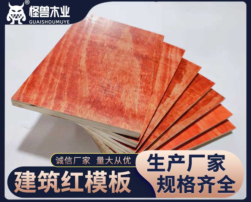 紅色建筑模板又叫鐵紅面建筑模板還有酚醛面建筑模板,是選用進口輻射松、樟子松或國內的馬尾松旋切做為面皮,然后在膠機上給模板過上面膠后,上熱壓機壓合而成,板面木質感比較明顯。